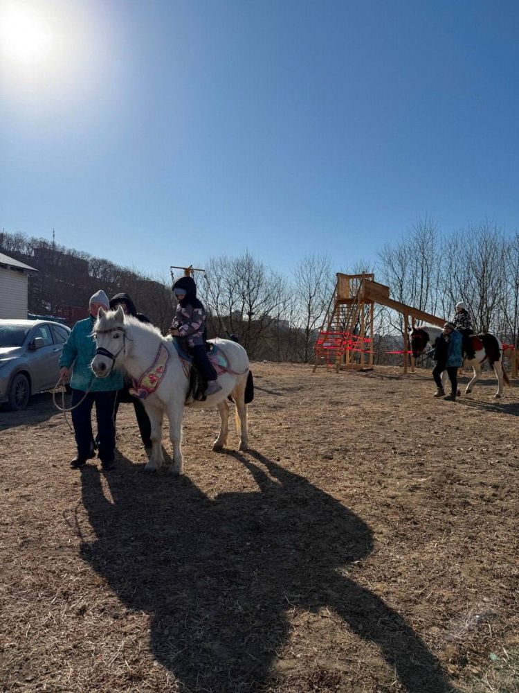 Все желающие могли присоединиться к общим забавам и хороводам. Малыши с удовольствием катались верхом на пони Мэри и лошадке Пижамке, играли в подвижные игры, осваивали искусство передвижения на ходулях и столбоступах, соревновались в перетягивании каната.