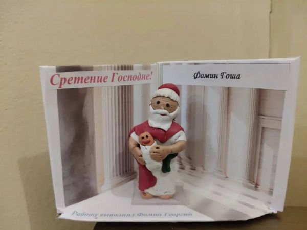 15 февраля в храме Рождества Христова п. Славянка была организована выставка детских работ, приуроченная к празднику Сретения Господня. На экспозиции были представлены рисунки и поделки на заявленную тематику.