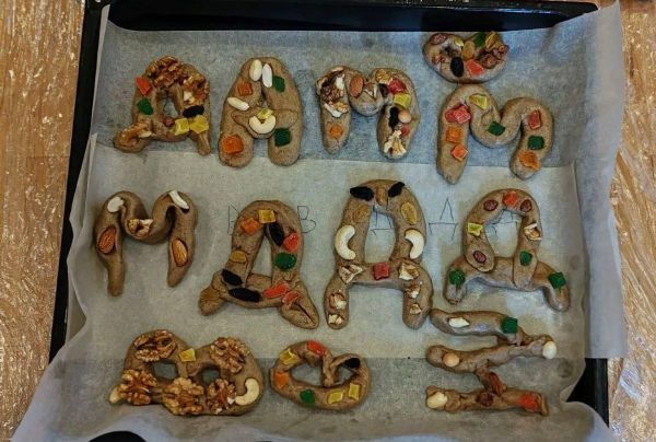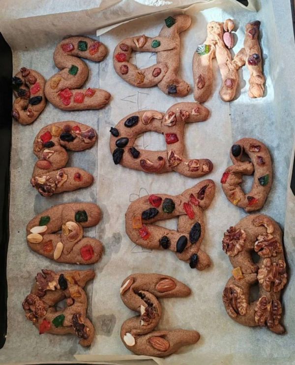Кроме теоретической части занятия, учеников ждало интересное творческое задание: каждый ребенок самостоятельно вылепил из постного теста первую букву своего имени, украсив её сухофруктами и орехами. По завершении Литургии и общей трапезы дети получили свою уникальную сладость.