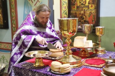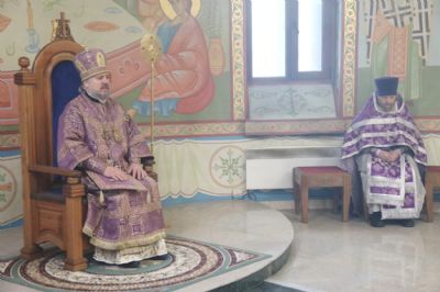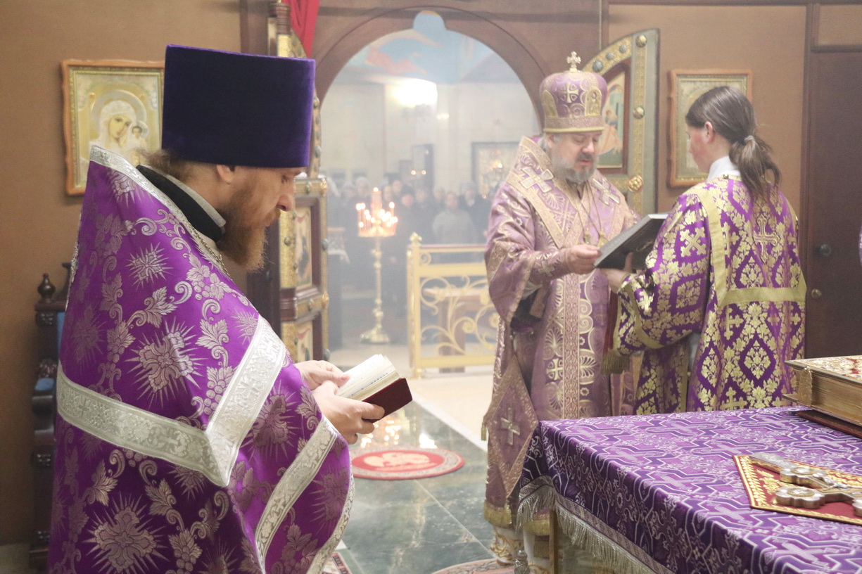 Его Преосвященству сослужили: иерей Андрей Калнин, иерей Виталий Шаркеев и иеромонах Ермоген (Крещенко).