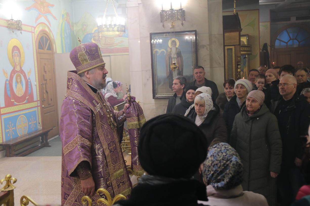 По заамвонной молитве епископ Николай обратился к присутствующим с архиерейским словом, в котором напомнил прихожанам житие и подвиг Севастийских мучеников.