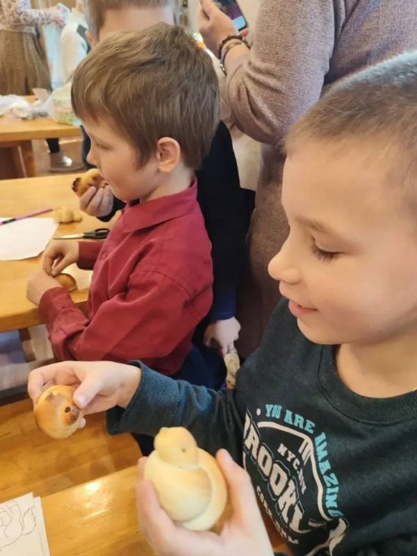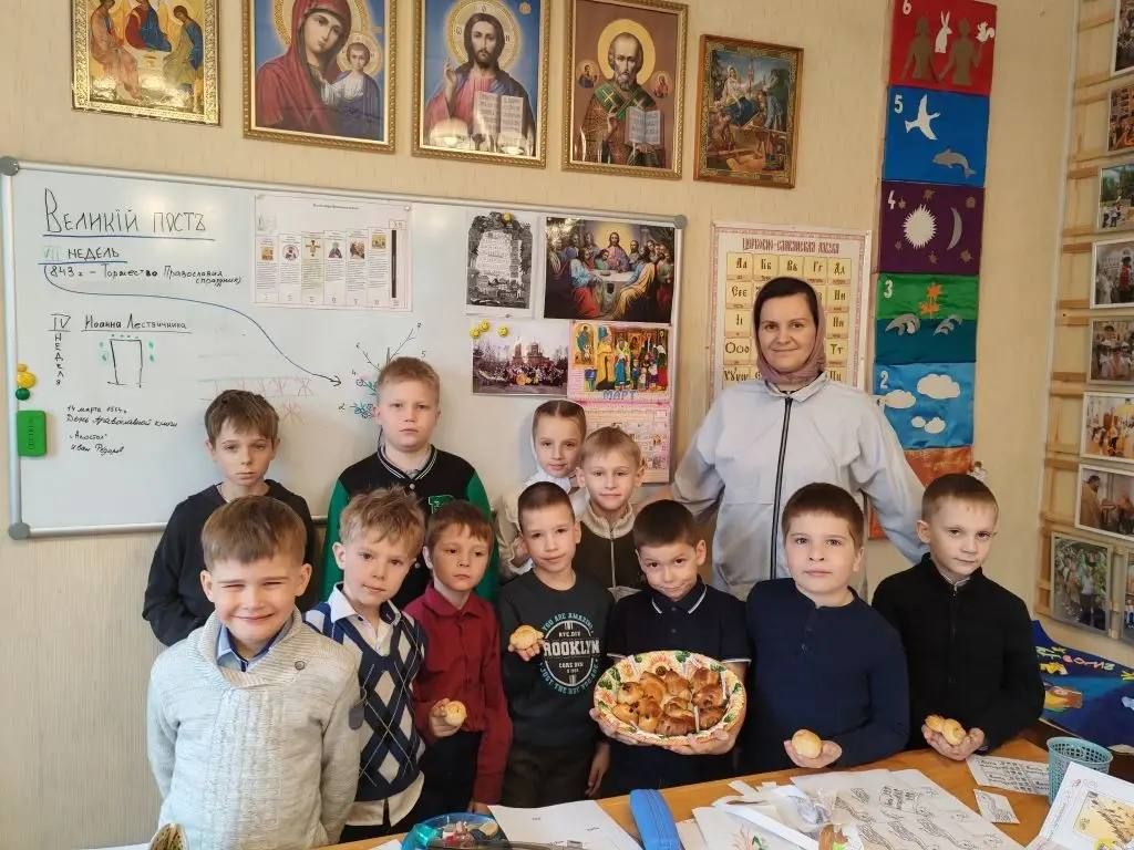 Особой традицией этого дня является выпекание постных жаворонков. Дети среднего и младшего классов с радостью занимались этим делом: у каждого получилась своя, неповторимая птичка. По окончании Божественной литургии настоятель храма, протоиерей Сергий Бирюк, вручил всем прихожанам и ученикам воскресной школы жаворонков из постного теста.