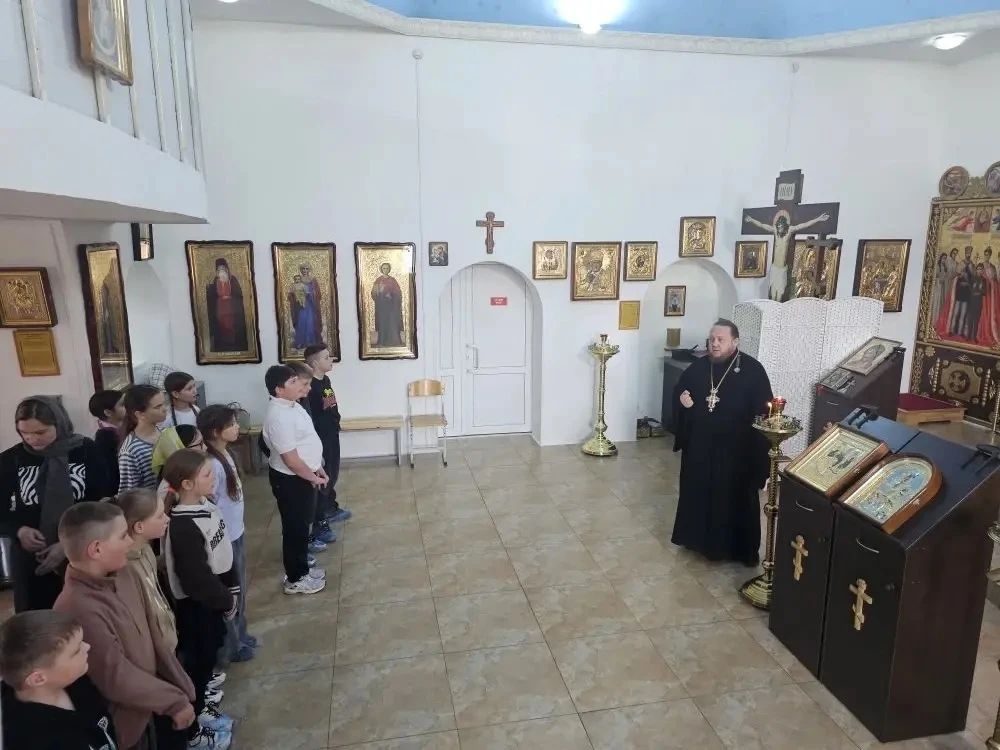 В ходе экскурсии ребята познакомились с устройством и архитектурой православного храма, узнали об особенностях иконописной традиции. Школьникам рассказали о Божиих заповедях и их значении в повседневной жизни, а также о Таинствах Исповеди и Причастия.