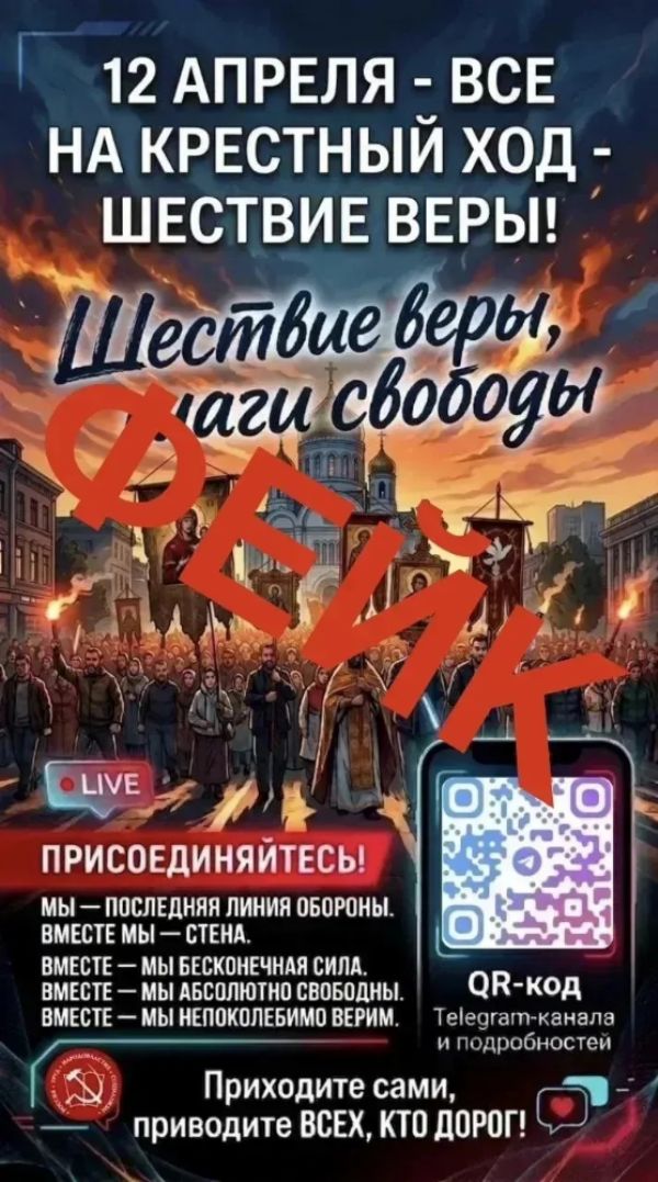 В последние несколько дней в сети Интернет появились сообщения, в которых анонсируется проведение 12 апреля акции «Шествие Веры».