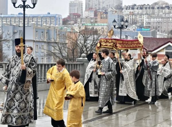 Вечером 10 апреля, в канун Великой Субботы, митрополит Владивостокский и Приморский Павел возглавил в Спасо-Преображенском кафедральном соборе г. Владивостока утреню с чином погребения плащаницы Христа Спасителя.