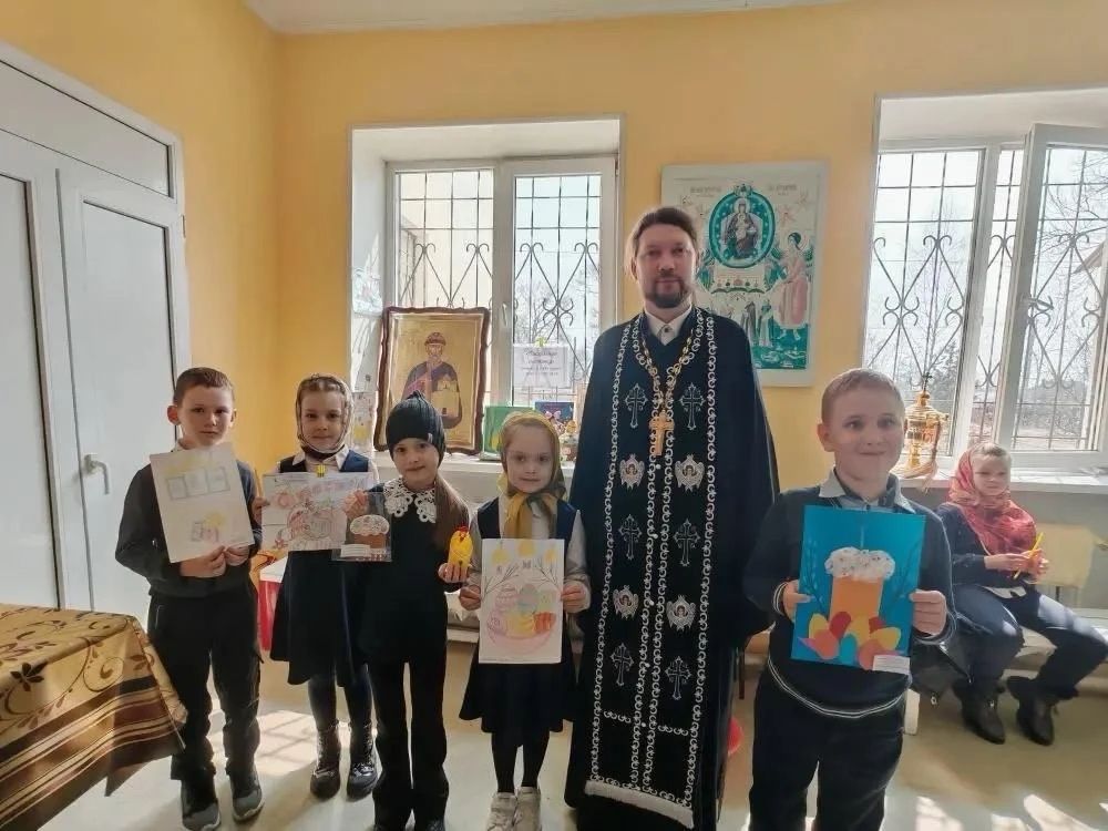 Помимо этого, ребята подготовили рисунки и поделки на Пасхальную тематику. В завершение встречи отец Андрей вместе с преподавателями и учениками устроили дружеское чаепитие, а общее фото на память стало доброй традицией и символом дружбы между школой и приходом.