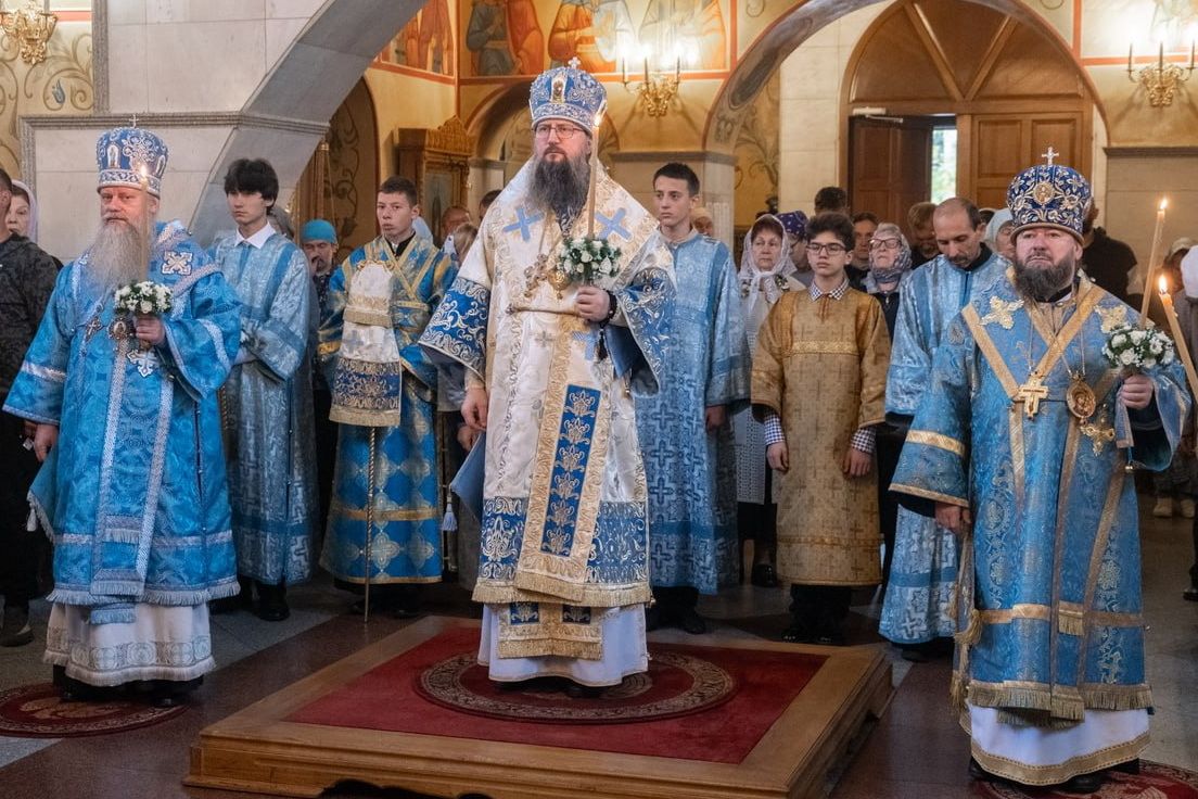 В день перенесения мощей свв. блгвв. кн. Петра и кн. Февронии и Церковного новолетия в Спасо-Преображенском кафедральном соборе состоялась торжественная соборная Литургия