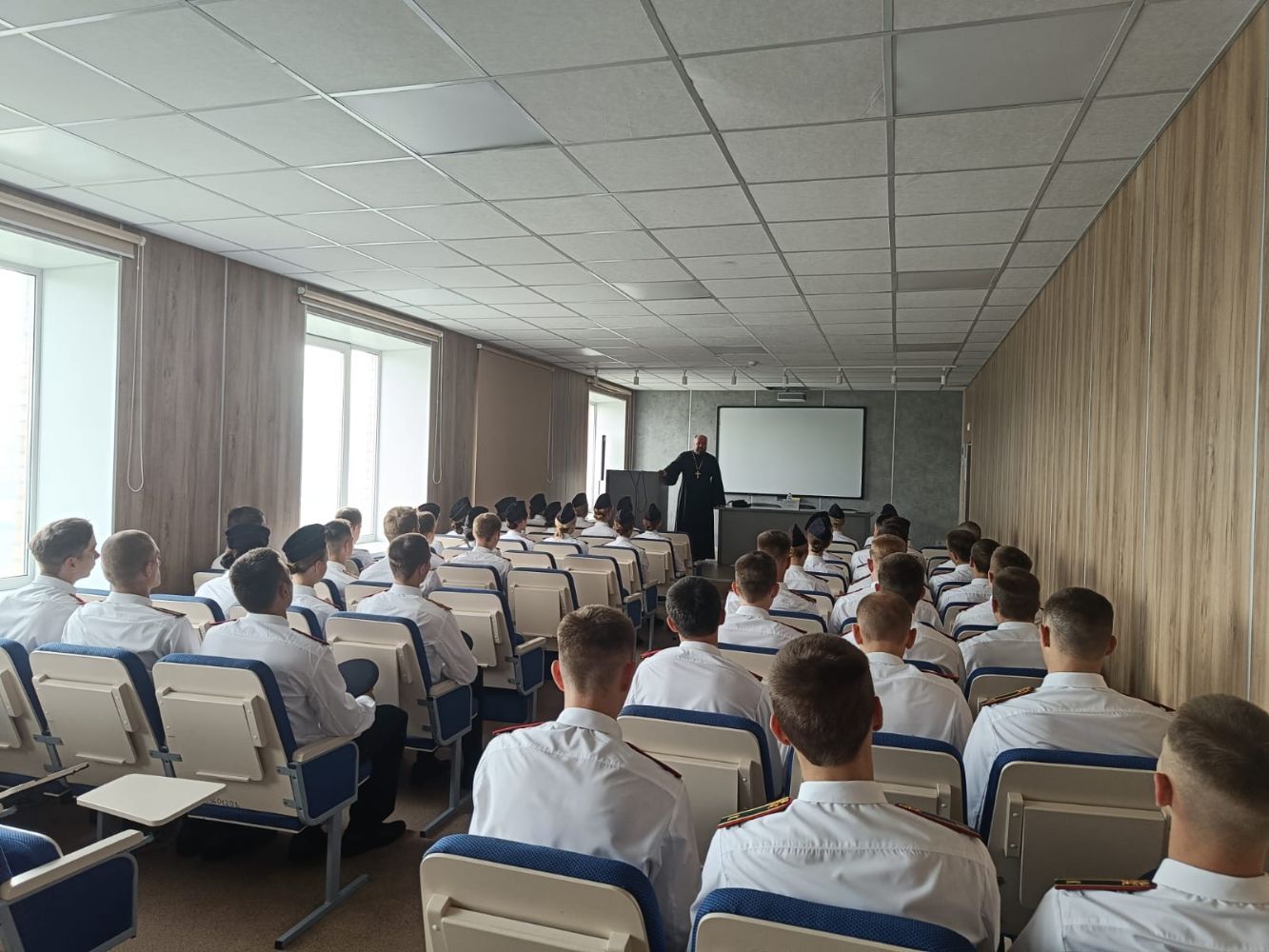 Иерей Владимир Ковальчук, руководитель отдела по вопросам семьи, защиты материнства, отцовства и детства Владивостокской епархии, встретился с учащимися частной школы «Архимед»
