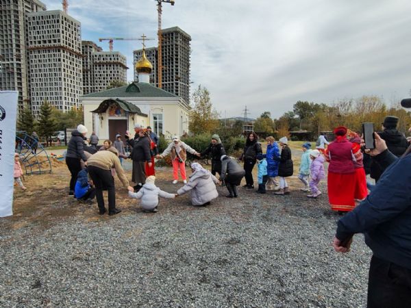 Праздничную атмосферу создавал ансамбль «Русский стиль», исполнивший как народные, так и авторские песни, написанные специально для этого события. Очень скоро выступление музыкантов переросло в большое общее действо. Взрослые и дети, взявшись за руки, закружились в хороводах, вместе пели знакомые русские народные песни, весело аккомпанировали на деревянных ложках и трещотках.