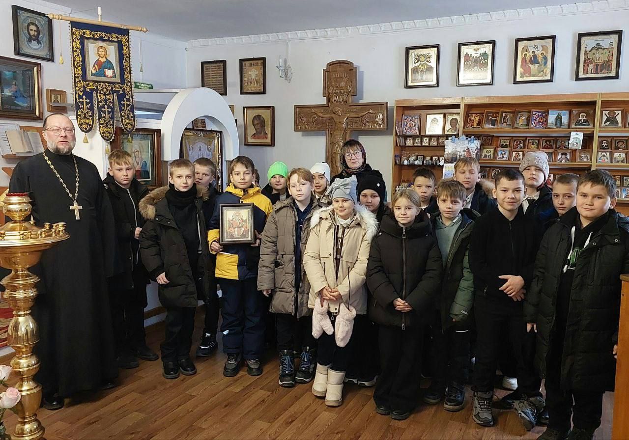 23 декабря храм Успения Пресвятой Богородицы п. Тавричанка посетили учащиеся 4 класса МБОУ СОШ №4 имени В.Н. Косова вместе со своими педагогами. Гостей встретил настоятель храма иерей Александр Казанцев.