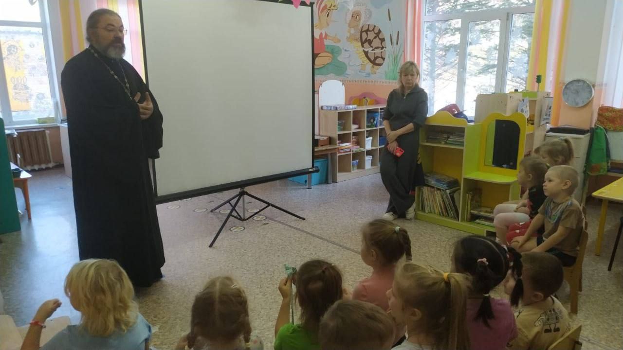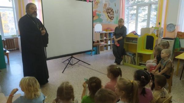 18 декабря в рамках муниципального проекта «Благо-Дарю» иерей Илия Точуков, настоятель храма Порт-Артурской иконы Божией Матери г. Владивостока, провел киноурок «Новогодний подарок» для воспитанников детского сада №30.